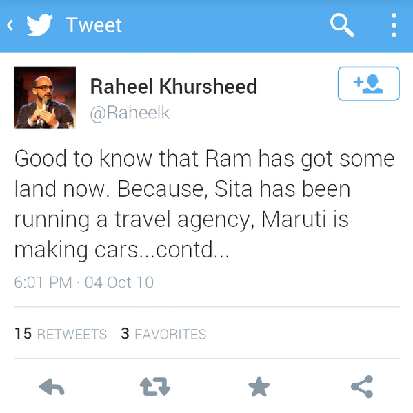 Presented with this article are some of the tweets, Raheel had posted before he joined Twitter India.