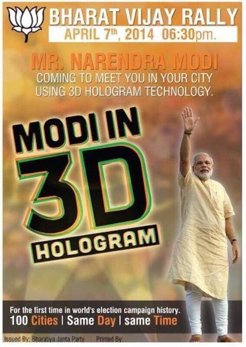 Shri Modi had successfully addressed a few hundred 3D rallies during the Gujarat assembly elections in 2012. He had got exclusive rights for 3D technology for two years to cover the Lok Sabha elections.