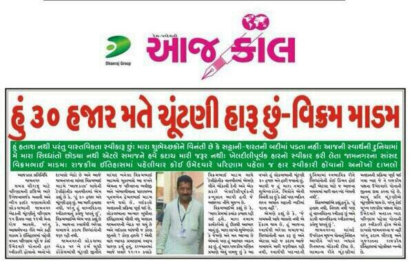 A day after polling, Vikram Madam in a telephone talk with Gujarati news channel Sandesh News, statement to E TV Gujarati and also in his talk with local reporters from print media said, he will lose the election this time by margin of around 30,000 votes.