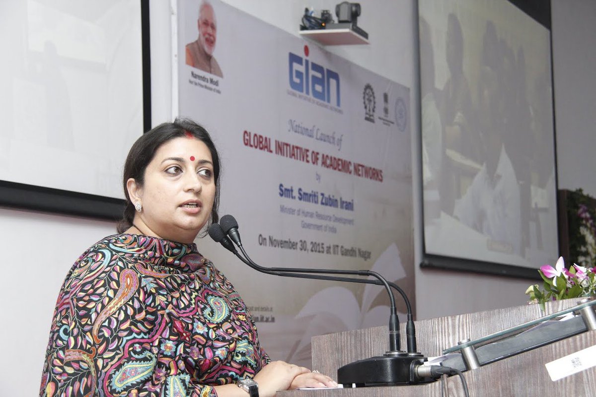 Global Initiative on Academic Network (GIAN) will be an opportunity for students of institutes across the country to interact with and learn from international faculty and experts. This is what Union Minister of Human Resource Development Smt Smriti Irani said at IIT Gandhinagar (IITGN) during the inauguration of a new Ministry of Human Resource Development (MHRD) scheme called Global Initiative of Academic Network (GIAN) on November 30, 2015 (Monday).