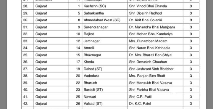 BJP announces Gujarat candidates for 15 more Lok Sabha seats; total 16 of 26 candidates declared, of them 14 repeated