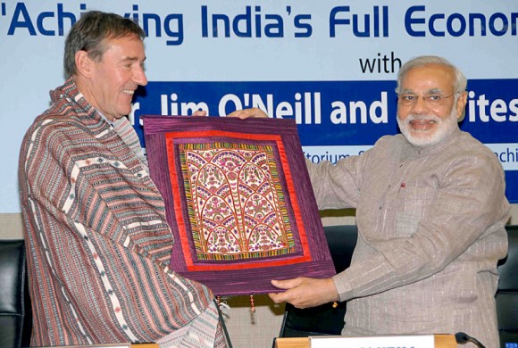For the starters who don’t know Jim O’Neill, he is the father of term BRICs. In 2003, this report from Goldman Sachs changed the flow of global money. He and his team bet much higher on India out of 4 countries, he was the most upset in 2011 blaming Indian central leadership for failing. http://articles.economictimes.indiatimes.com/2011-12-01/news/30463190_1_external-shocks-growth-environment-scores-fdi Two years later, he realized there is some hope for India and he gave insights on way out for India in the company of Narendra Modi.