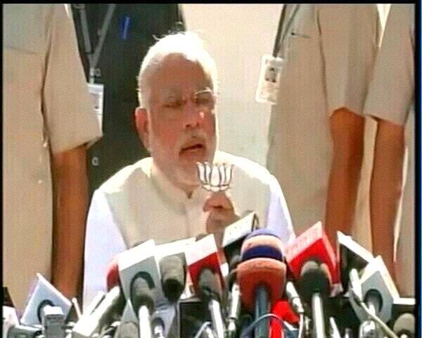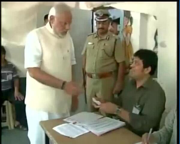 Modi said: Today is polling day in Gujarat and some other states. Election is big festival of democracy and all people should vote to strengthen democracy. I especially thank people of Gujarat for completely a peaceful election campaign . I congratulate the voters of Gujarat, people of Gujarat and all those who contributed to peaceful campaign. I apologize to people of Gujarat. Earlier I used to allot lot of time for campaign here but this time I have been able to allot only 18 hours to Gujarat. Voting so far has ensured that mother son government has gone, and another thing is that, foundation of new government has been laid. I have traveled highest in this election season and measured the mood. I can give first report there. The voting now is to ensure a strong government. And there’s heavy polling in such a heat that has never been before. It shows this is an election of hope, it has brought a new hope, new trust. It will give new strength to the nation. On 16th May the message will be clear. There will be a strong government led by BJP. There is no confusion on that. Congress has accepted defeat the way they are giving statements of aligning with third front etc. Don’t forget Nirbhaya. Don’t forget unemployed youth. Don’t forget farmers committing suicide. Don’t forget how our soldiers were beheaded. Vote for a glorious future of India. This nation has a lot of strength and I have faith in people of India and youth of India.