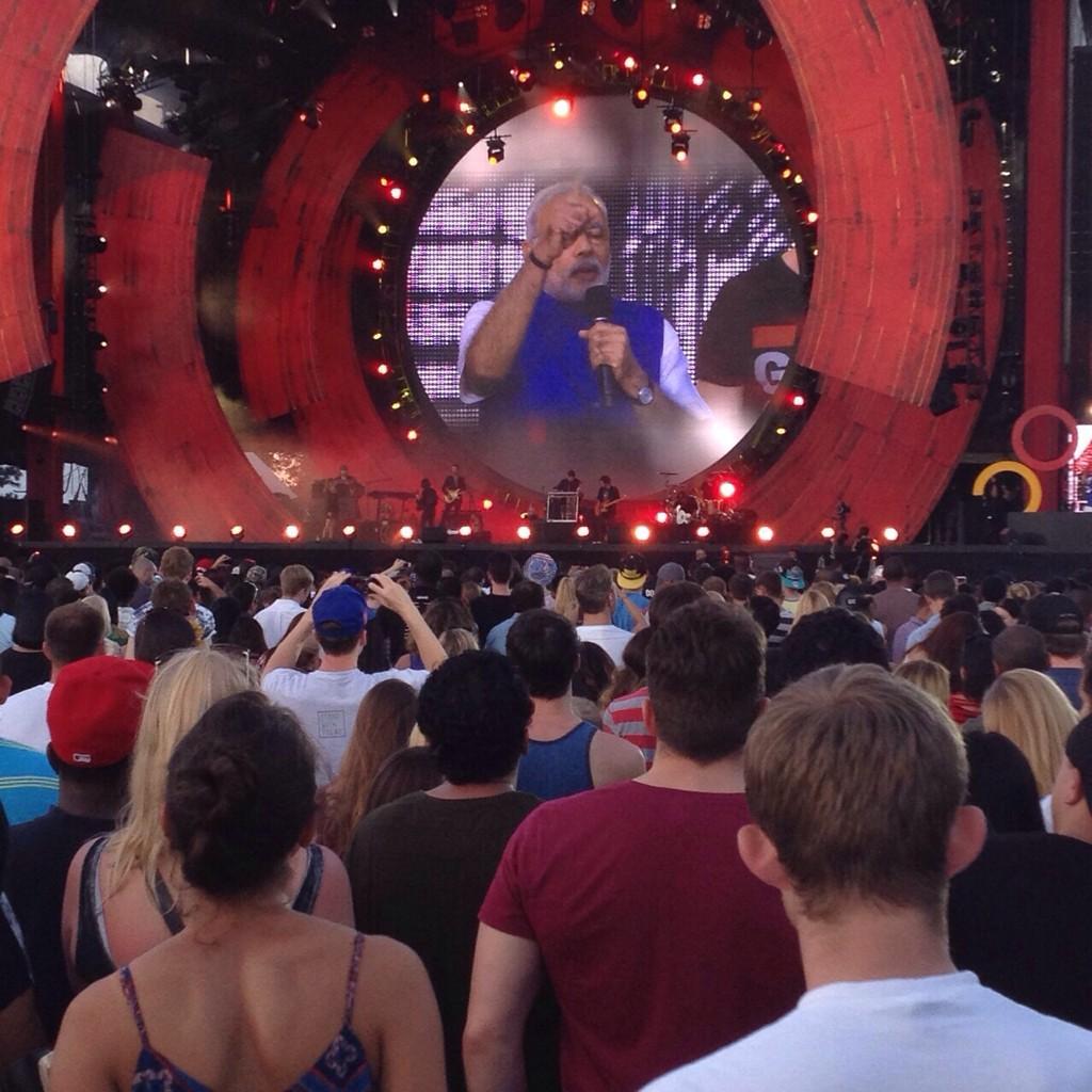 Addressing the crowd, Modi also sent his “Namaste” to those watching the concert on “TVs, laptops, tablets and phones”.