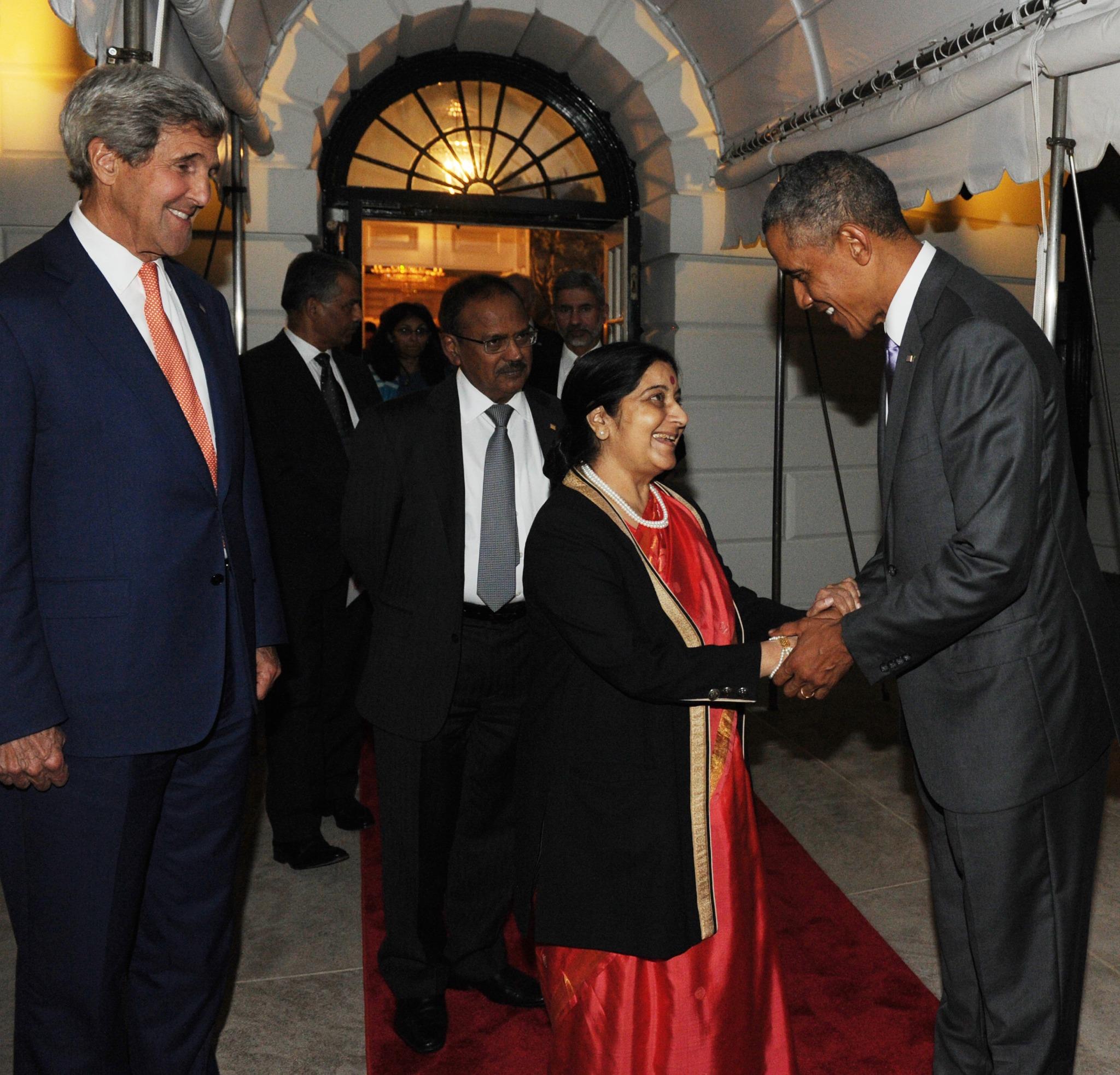 At dinner being hosted by President Obama, the PM is accompanied by external affairs minister Sushma Swaraj, NSA Ajit Doval, foreign secretary Sujatha Singh and US envoy S Jaishankar according to Syed Akbaruddin