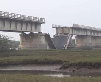 Due to collapse of 25 years old river bridge on Porbandar-Somnath coastal highway, the traffic of vehicles has been diverted by district administration to nearby old bridge on same river Bhadar.