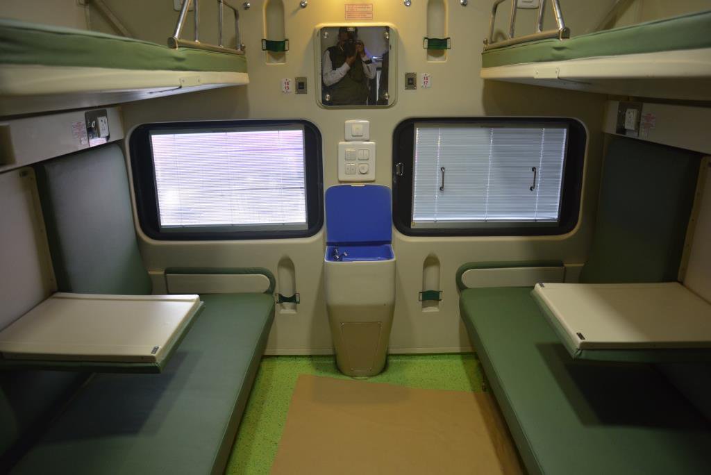 Coaches of Mahamana Express are equipped with features like controlled discharged water tap, new toilet modules, exhaust fans, LED lights, snack tables for side berth passengers and use of fire retardation materials.