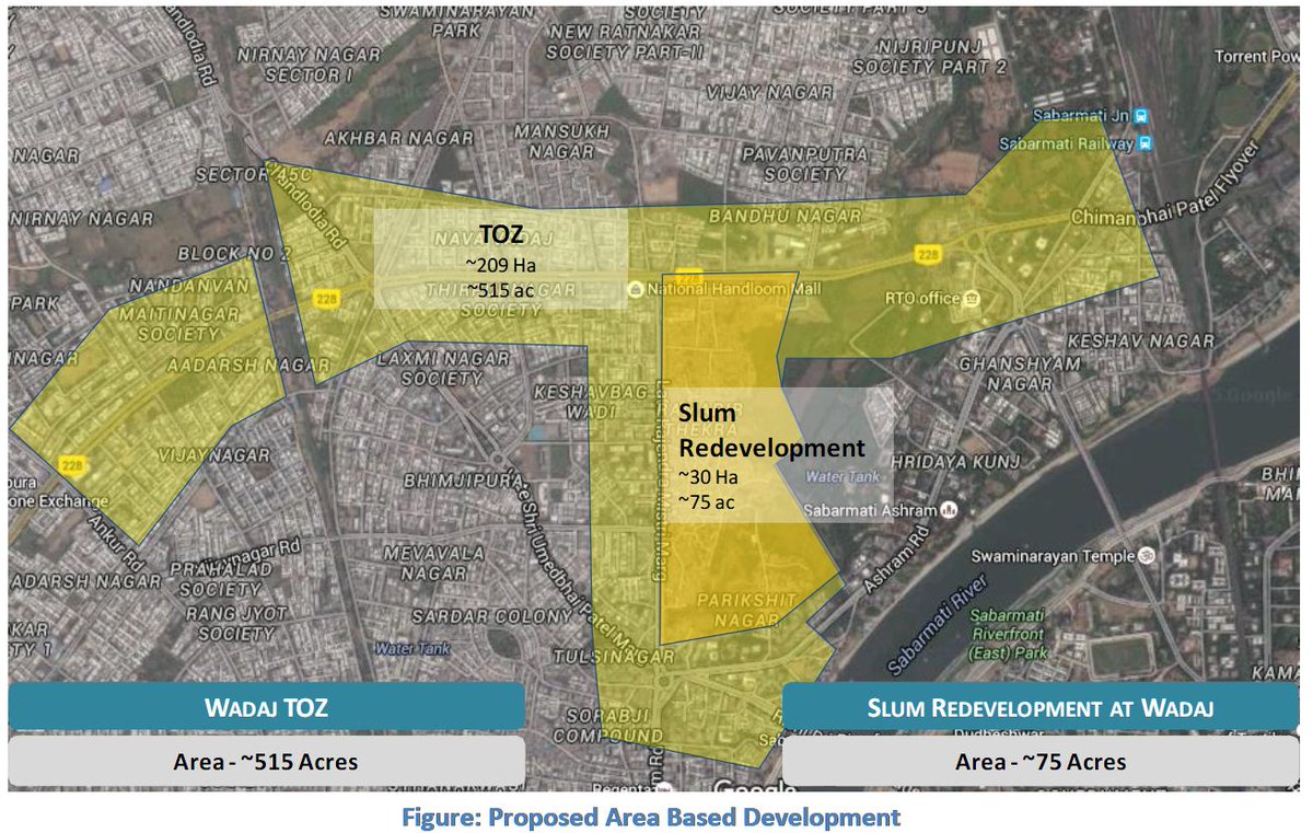 The second part of AMC’s proposal for Smart City project is about Area based development. It proposes a redevelopment and retrofitting proposal of Wadaj area. While retrofitting covers 515 acres of proposed TOZ area with retrofitting with higher capacity and smart infrastructure, the redevelopment sub-section proposes redevelopment of 75 acres of slum area of Vadaj through Public Private Partership(PPP) model and provision of housing for 8,000 families.