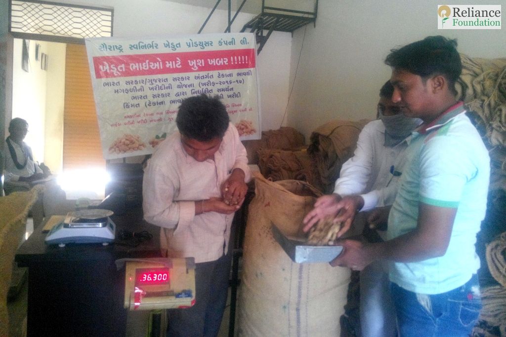 The Jasdan FPC has been transacting on behalf of Jasdan farmers in collaboration with Gujarat State Co-Operative Cotton Federation Limited (GUJCOT). The members’ interest and community participation in the FPC at Jasdan ensured that they got a procurement centre to procure Groundnut Pods at Minimum Support Price (MSP) for NAFED (National Agricultural Co-Operative Marketing Federation) for second consecutive year and also got the nod from NAFED to start another centre in November 2017 from RF project villages at Vankiya, which will help more farmers to get associated with the company.