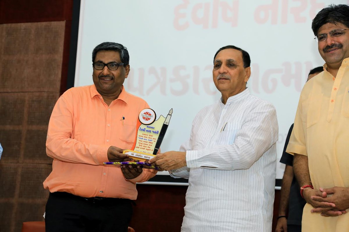 Ahmedabad: Gujarat Chief Minister conferred the Maharshi Narad Awards to the media persons in a function organized by Rashtriya Swayamsevak Sangh(RSS)’s media wing Vishwa Samvad Kendra to mark Maharshi Narad Jayanti here.