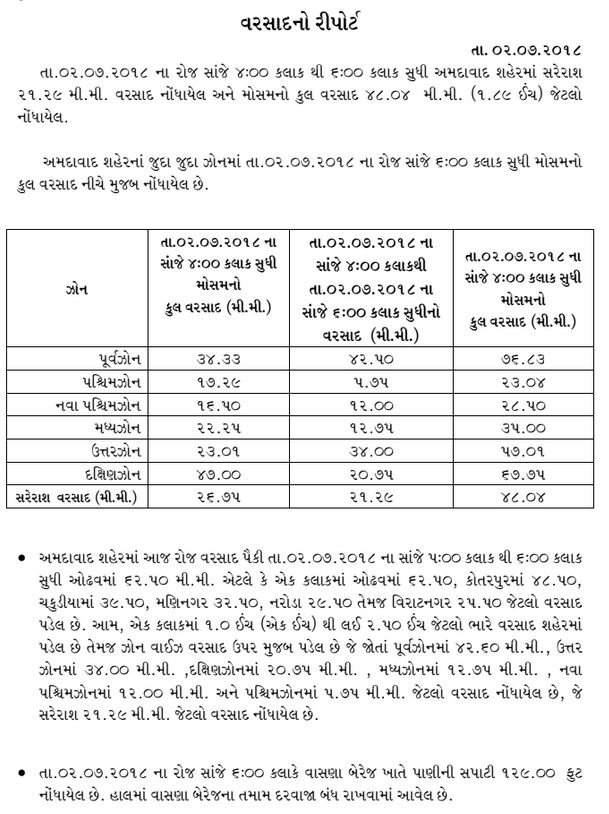 Ahemdabad city saw spells of rain in the afternoon and in the evening. It witnessed on an average around one inch of rain while some areas saw over 2.5 inches of rain. It also caused water logging in several low lying areas.