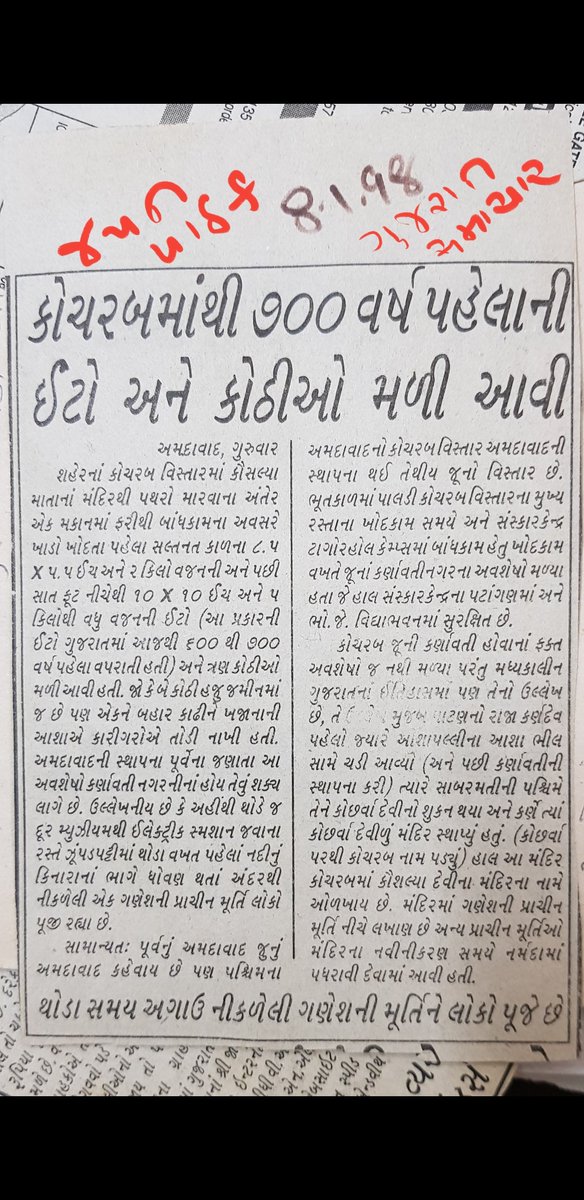 It’s worth mentioning that Kochrab Devi’s temple built by Karna is still there in Kochrab village in Ahmedabad(West) at present. People now call it Kaushalya Devi’s temple. As a field reporter, I had visited this temple during reconstruction of neighboring house and picked up a wide square brick when foundations were being digged. I had taken the brick to archaeological expert (then head of State Archaeology department Dinkar Mehta who would sit in Ahmedabad district panchayat building in Lal Darwaja area then) who confirmed it was Solanki era brick by its shape, size and make. Later I had kept that brick with me for quite some time. Two column report on this was also published in Gujarat Samachar in January 1998 when I was working as reporter. Old murtis of earlier version of Kochrab Devi temple were offered to river Sabarmati as they were too old and perhaps damaged, locals told me.