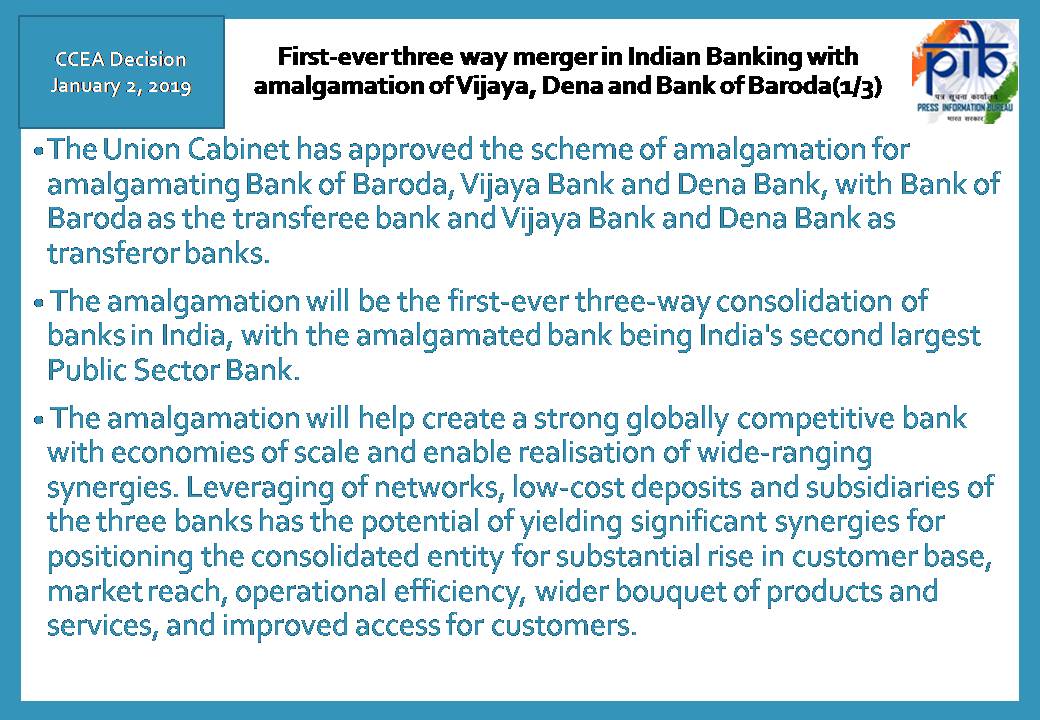 Union cabinet approves merger of Vijaya Bank, Dena Bank and Bank or Baroda