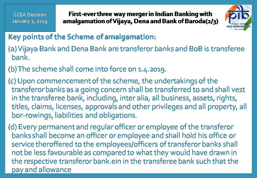 The Bank of Baroda would be the transferee bank while Vijaya Bank and Dena Bank would be transferor banks, Union Minister Ravi Shankar Prasad told a press conference after the Cabinet meet.