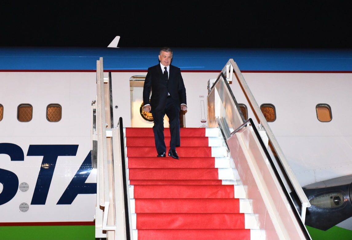 President of Uzbekistan @president_uz Shavkat Mirziyoyev arrives in Gujarat for Vibrant Gujarat 2019 Summit