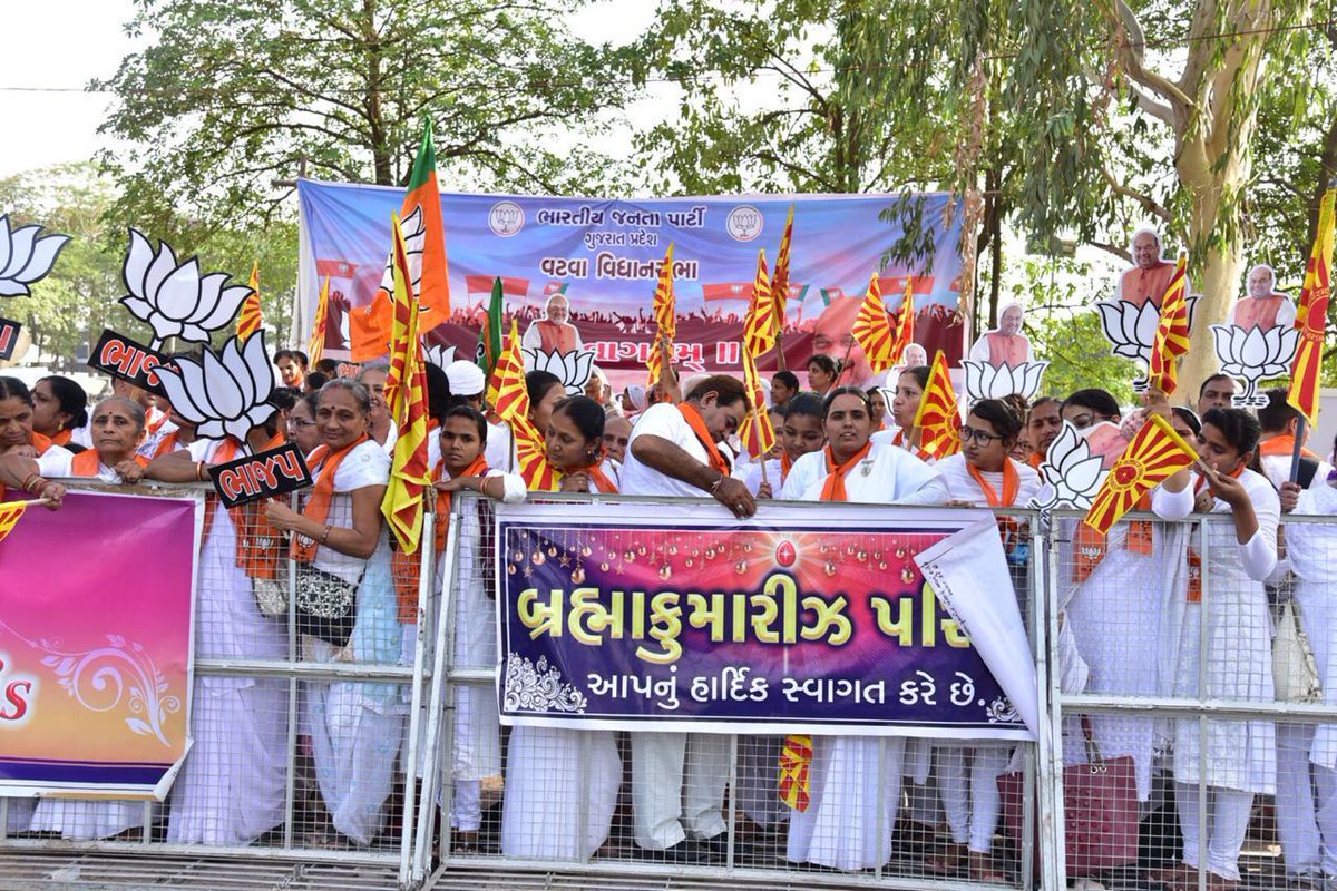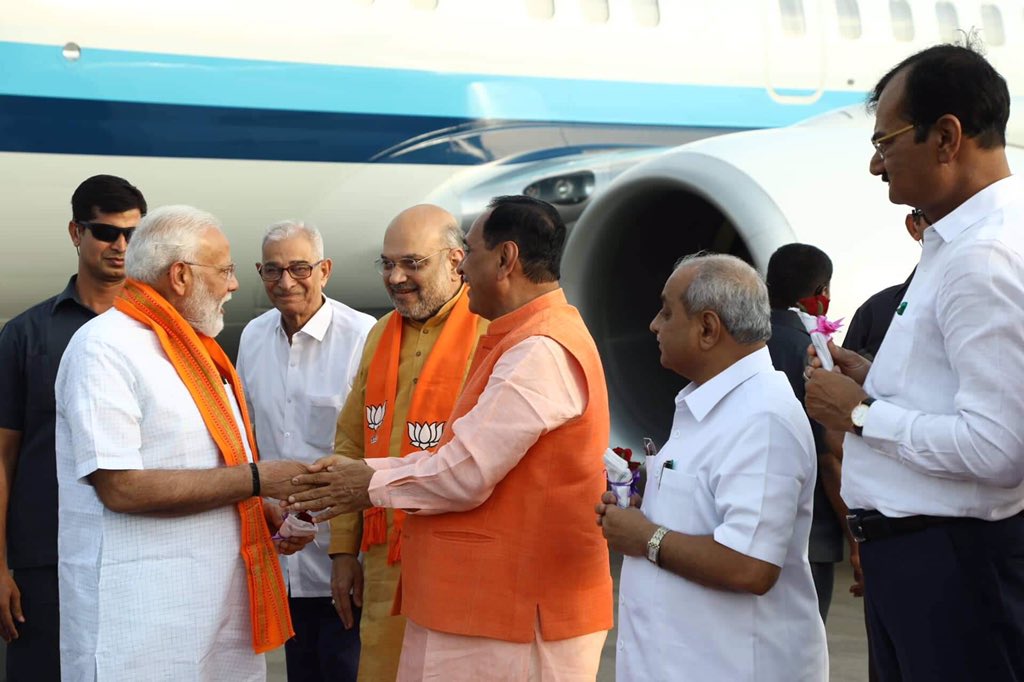 Gujarat BJP chief Jitu Vaghani said both leaders (Modi and Shah) conveyed him that even garlands, flowers, headgear and mementos will not be accepted by them in connection with sad incident in Surat. Both leaders were therefore felicitated by saffron scarfs only.
