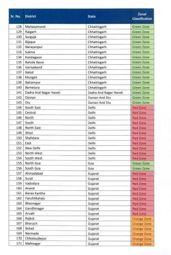The districts are classified based on incidence of cases, doubling rate, extent of testing and surveillance feedback. If there’s no confirmed cases so far or there is no reported case since last 21 days in the district it will be considered under green zone. The list is dynamic and it will be revised on a weekly basis or earlier. Based on field feedback and additional analysis at state level, states can designate additional red or orange zone as appropriate. However, states can not relax the zonal classification of districts classified as red/orange.