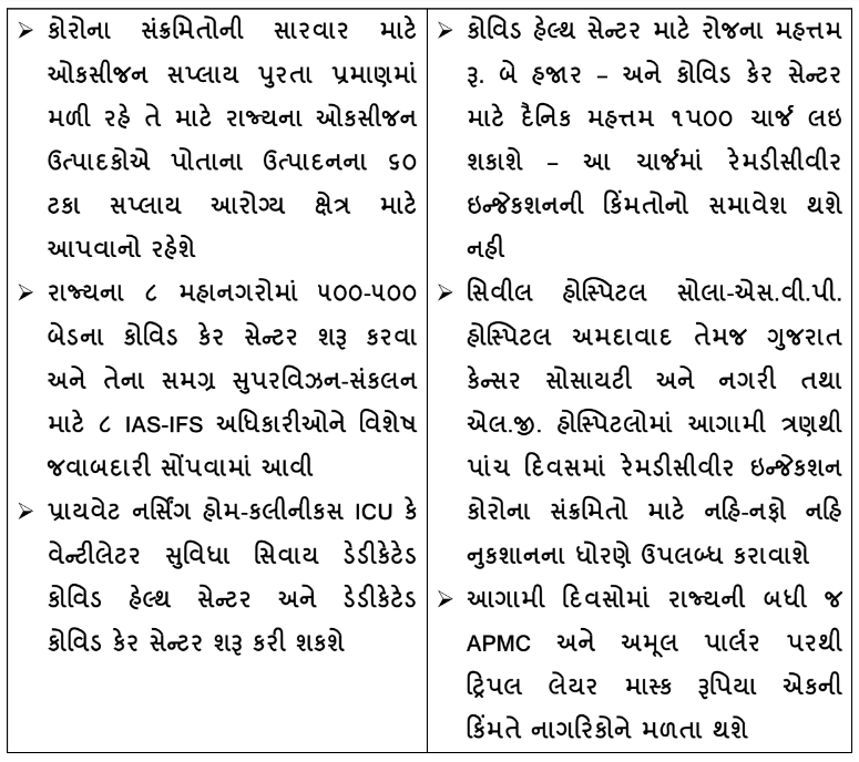 Gandhinagar: A Core committee meeting chaired by Chief Minister Vijay Rupani today took seven decisions in connection with ongoing covid19 pandemic situation.