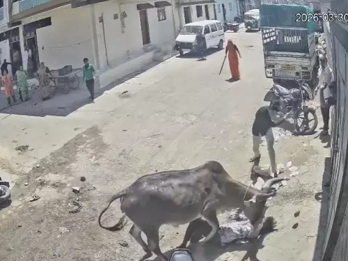 Stray Cattle Menace: Man Injured in Bull Attack in Rajkot Village, Video Goes Viral