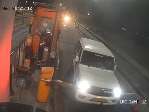 The incident took place on April 8 at around 12:30 am. The driver of a Bolero vehicle (GJ 10 TY 0847) passed through the toll plaza without paying the toll, damaging the boom barricade.